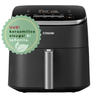 Keraamilise sisukattega kuumaõhufritüür on tervislikum alternatiiv teflonile: küpsetuskorv ja alusrest ei sisalda PFOA ega PTFE aineid. Need on ained, mida traditsiooniliselt kasutatakse teflonkatetes ja võivad olla organismi sattudes ohtlikud.